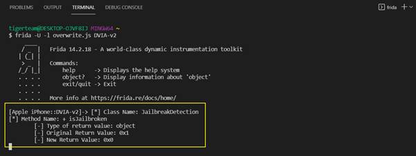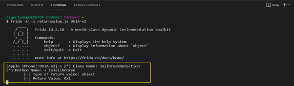 frida -U -l returnvalue.js DVIA-v2