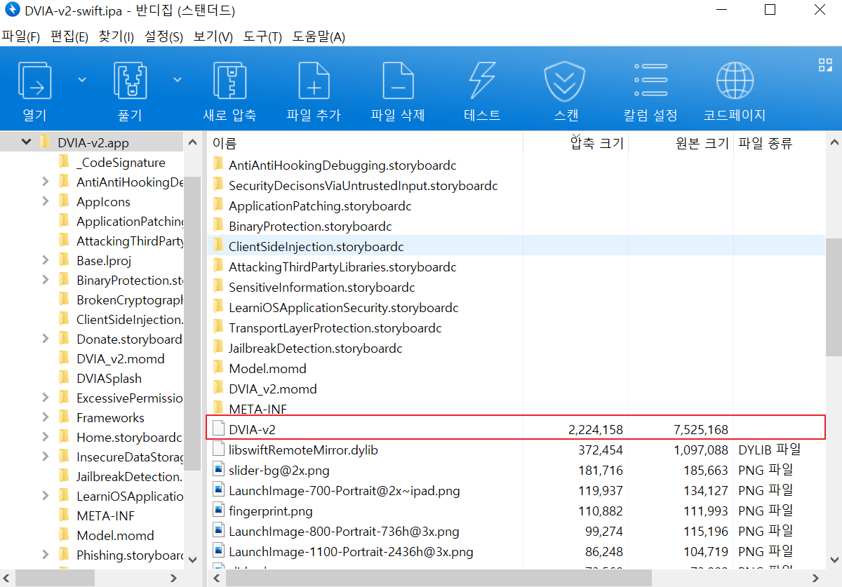 2. ipa 파일을 우클릭 합니다. 그런 다음 DVIA-v2.app을 더블클릭 합니다.(반디집 설치 필요)